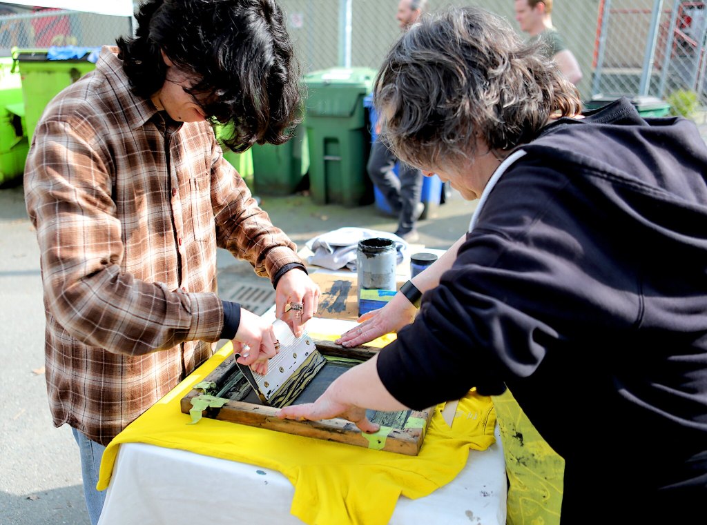 crayons and potato stamps, and making custom silk screened VTRU swag like T-shirts and tote bags. Many attendees also joined in a rousing rendition of “Solidarity Forever”.