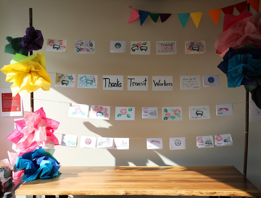 In every way, the Spring Transit Celebration surpassed our expectations. A total of approximately 50 people attended the event – including seniors, children, and everywhere in between. Together, we enjoyed the fair weather and free snacks and refreshments courtesy of local businesses, and as well as socializing we also busied ourselves with arts and crafts, making “thank you transit worker” cards with pencil